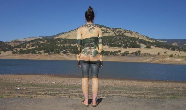Artist Natalie Fletcher has used a special kind of art, "tailor" the background colors of the landscape with humans.