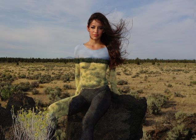 Artist Natalie Fletcher has used a special kind of art, "tailor" the background colors of the landscape with humans.